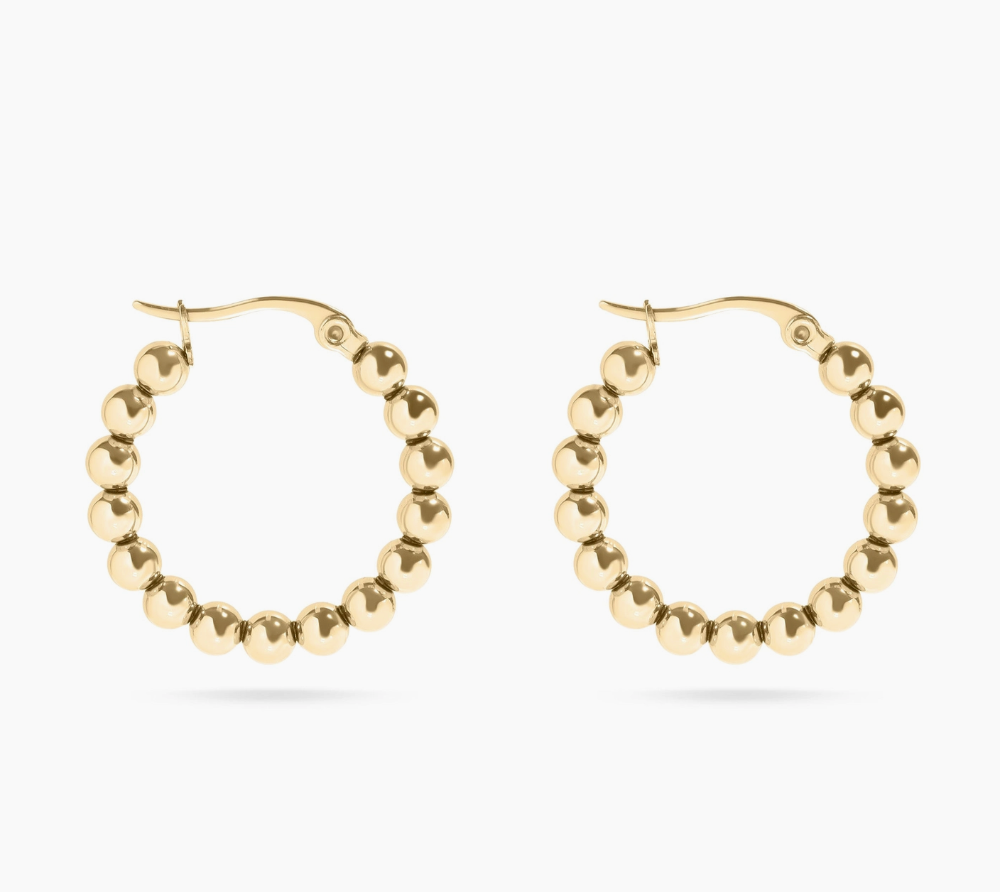 Minimalist with a luxe twist, our Circle Ball Hoop Earrings blend sleek design with subtle detail. Featuring a smooth circular silhouette and a polished ball accent, these lightweight hoops are crafted in stainless steel and dipped in radiant 18K gold. Ideal for everyday polish or a finishing touch to your night-out look.
