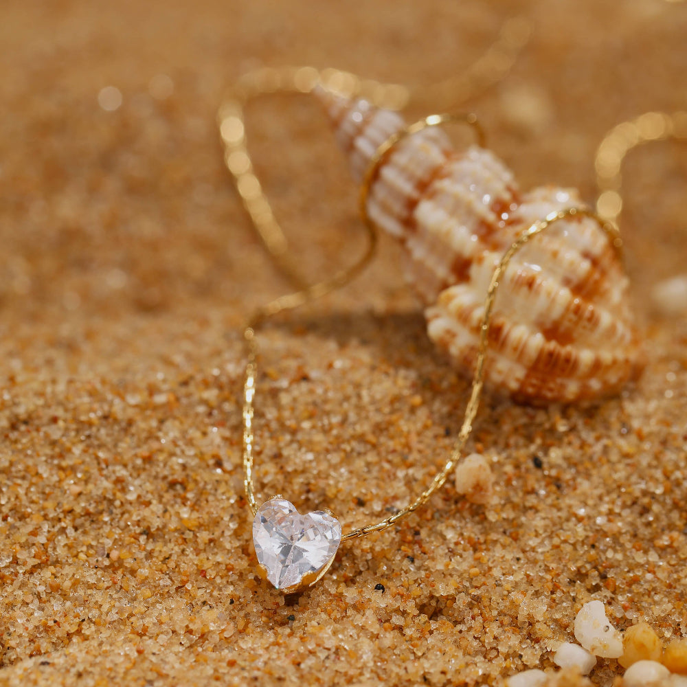 Meet the can't-help-but-stare piece your jewelry box was missing: our 18K Gold Diamond Heart Necklace. Featuring a sparkling, floating heart-shaped stone that seems to hover magically on a delicate gold chain, it’s all about effortless romance with a modern twist.