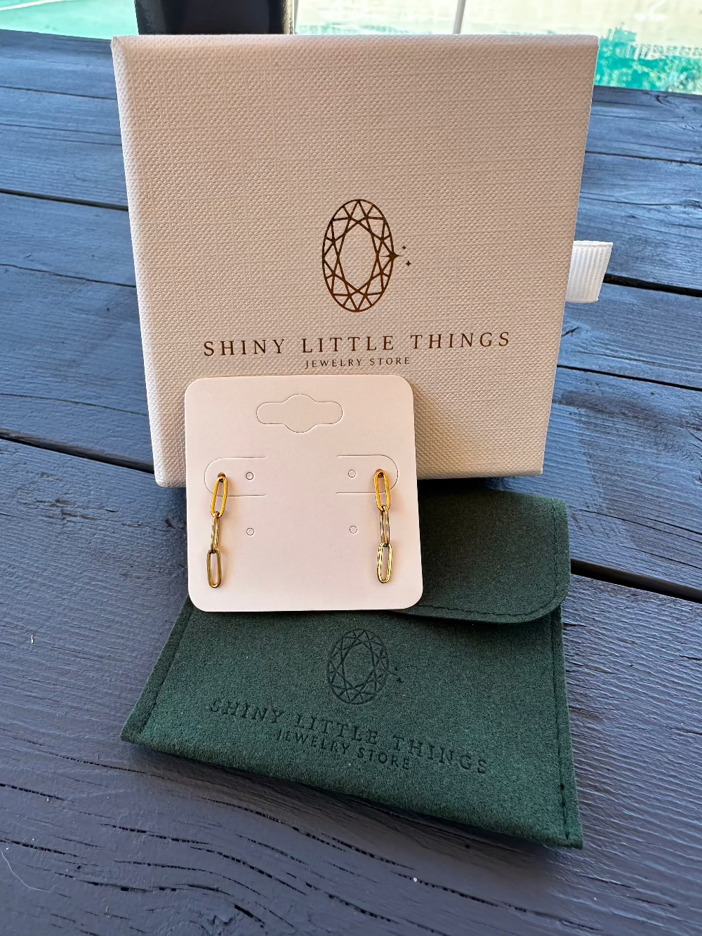 Add a sleek edge to your ear stack with our 18K PVD Gold Paperclip Earrings. With three delicate links dangling in minimalist harmony, these earrings are effortlessly cool and endlessly wearable. Lightweight and versatile, they’re a go-to for pairing with everything from denim to date-night dresses.