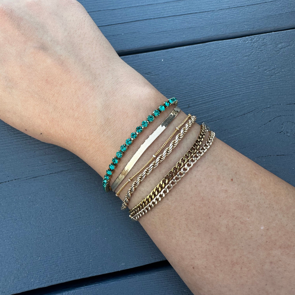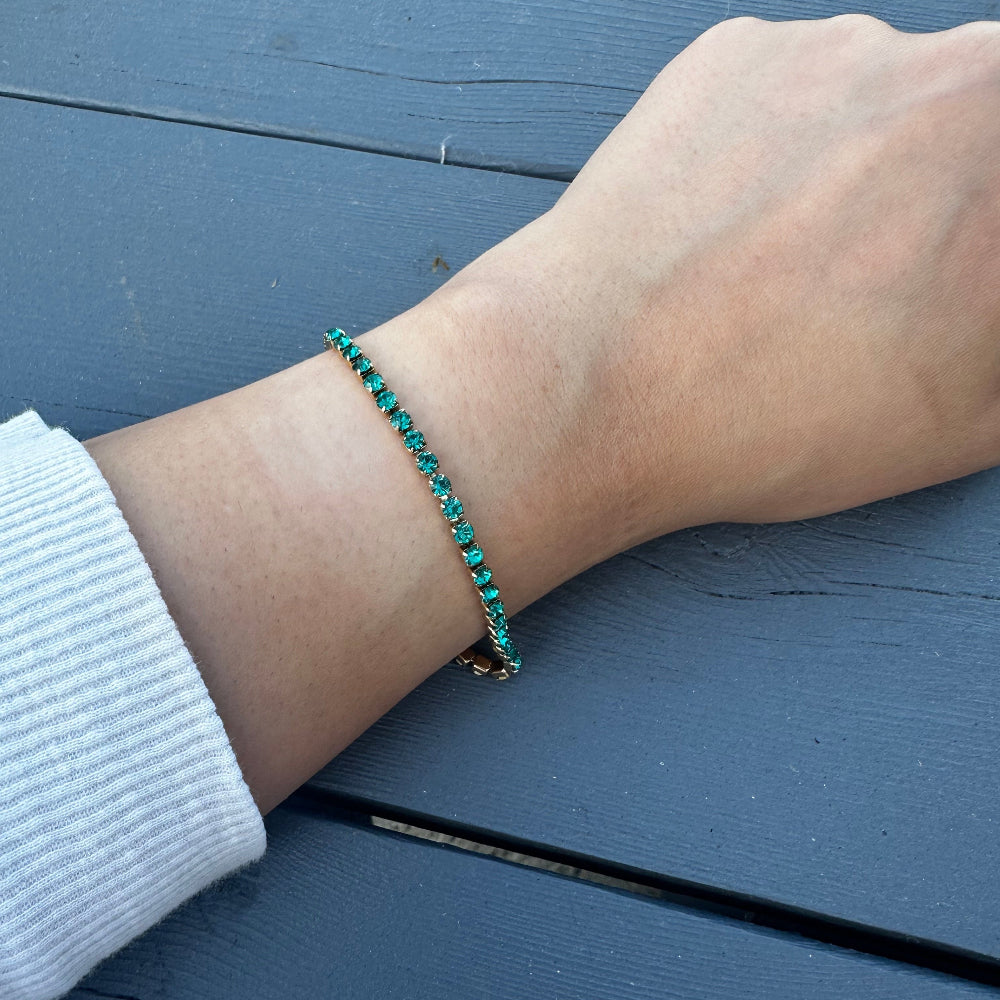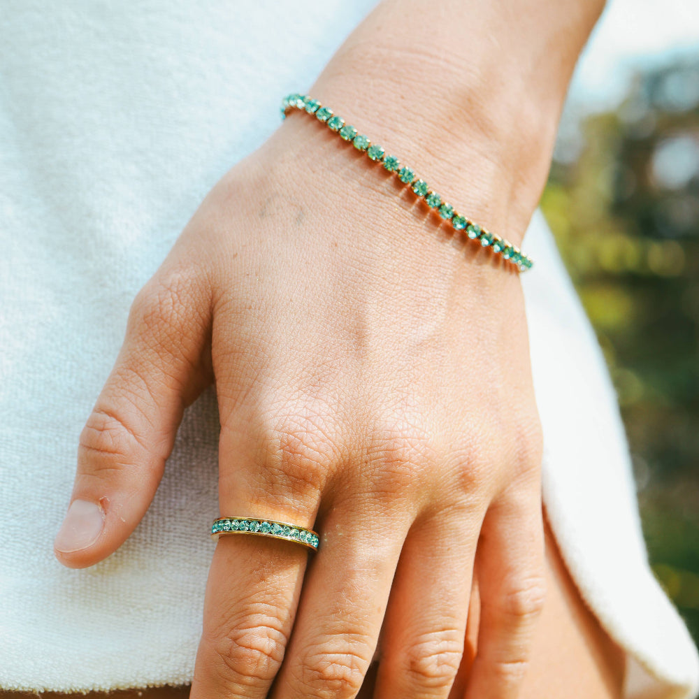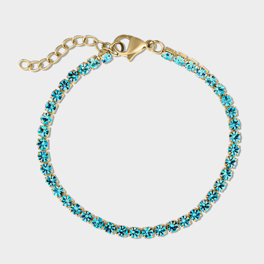 Celebrate your story—one stone at a time. Our Birthstone Tennis Bracelet adds a personal touch to a timeless classic with sparkling Austrian cubic zirconia, each representing a birth month or favorite hue. Set in gleaming 18K gold PVD-coated stainless steel, this bracelet brings all the shine without the fuss.
