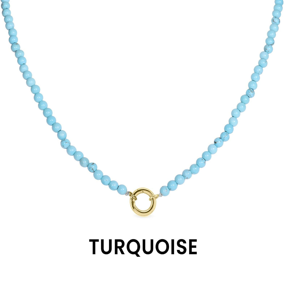 Embrace earthy elegance with our Semi Precious Natural Stone Charm Keeper Necklace. Measuring 18" in length, this beautifully crafted piece features a nature-inspired turquoise design paired with an easy-to-open charm keeper pendant—making it simple to personalize your look with your favorite charms.